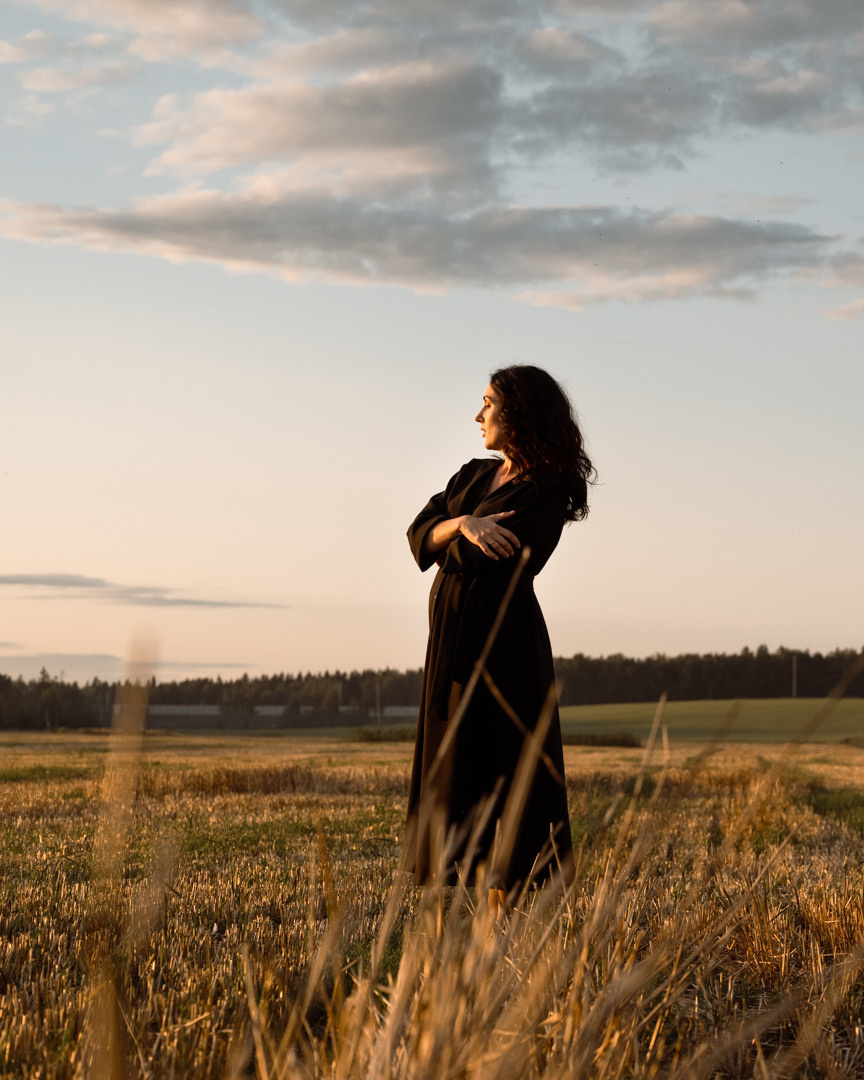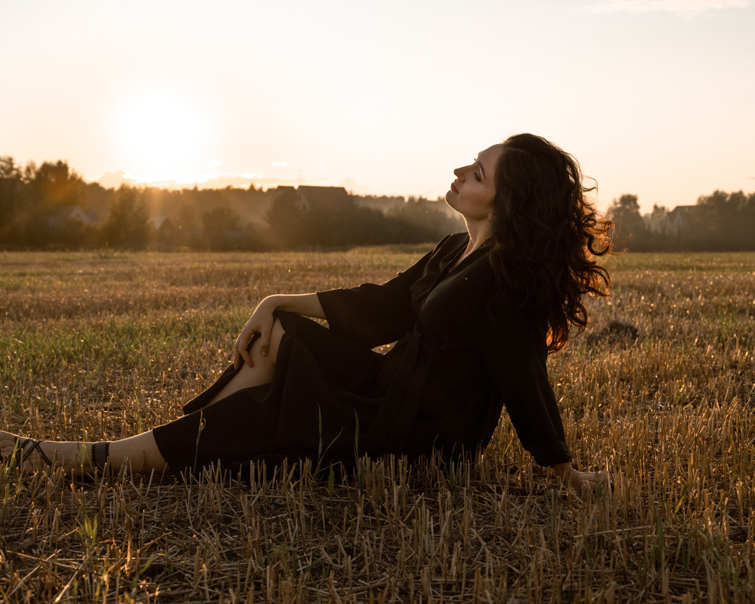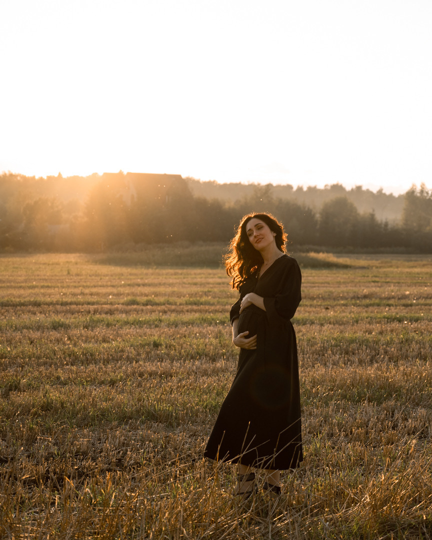 Вера всегда была потрясающе красивой, а во время ожидания на свет маленькой принцессы стала еще более прекрасной. Нам захотелось свежего воздуха, простора и спокойствия августа. Мы направились в поля и вдохнули тишину. Небо подарило нам прекрасный закат в тот вечер.