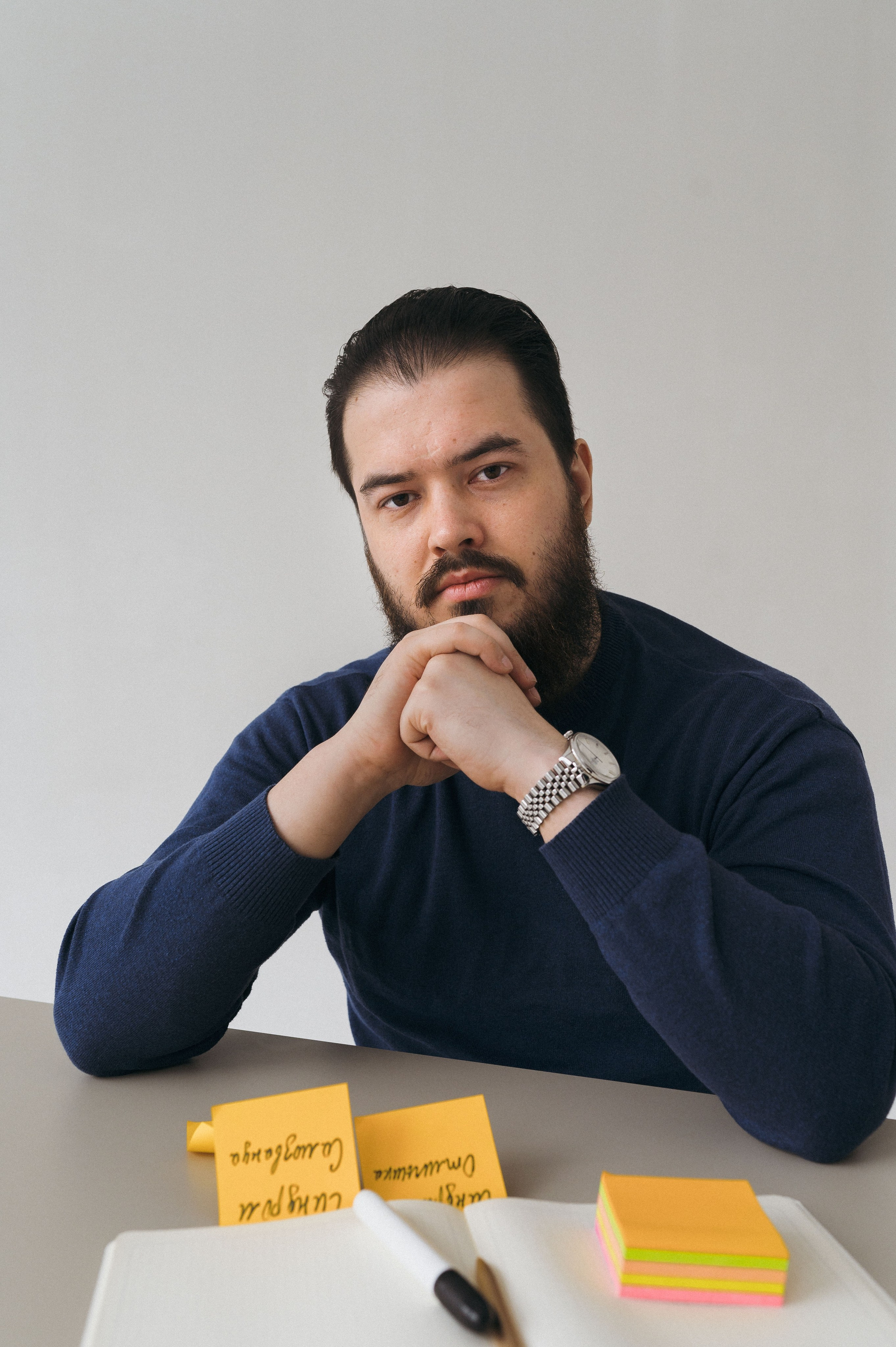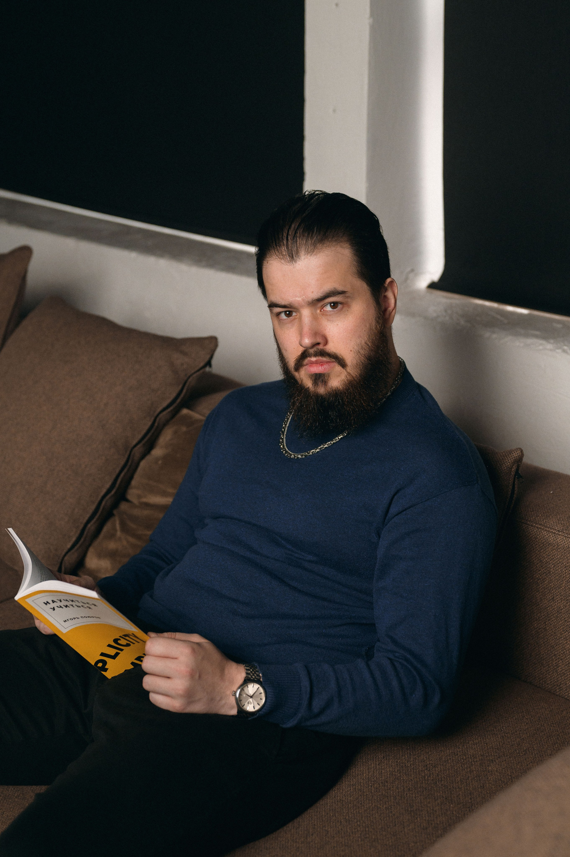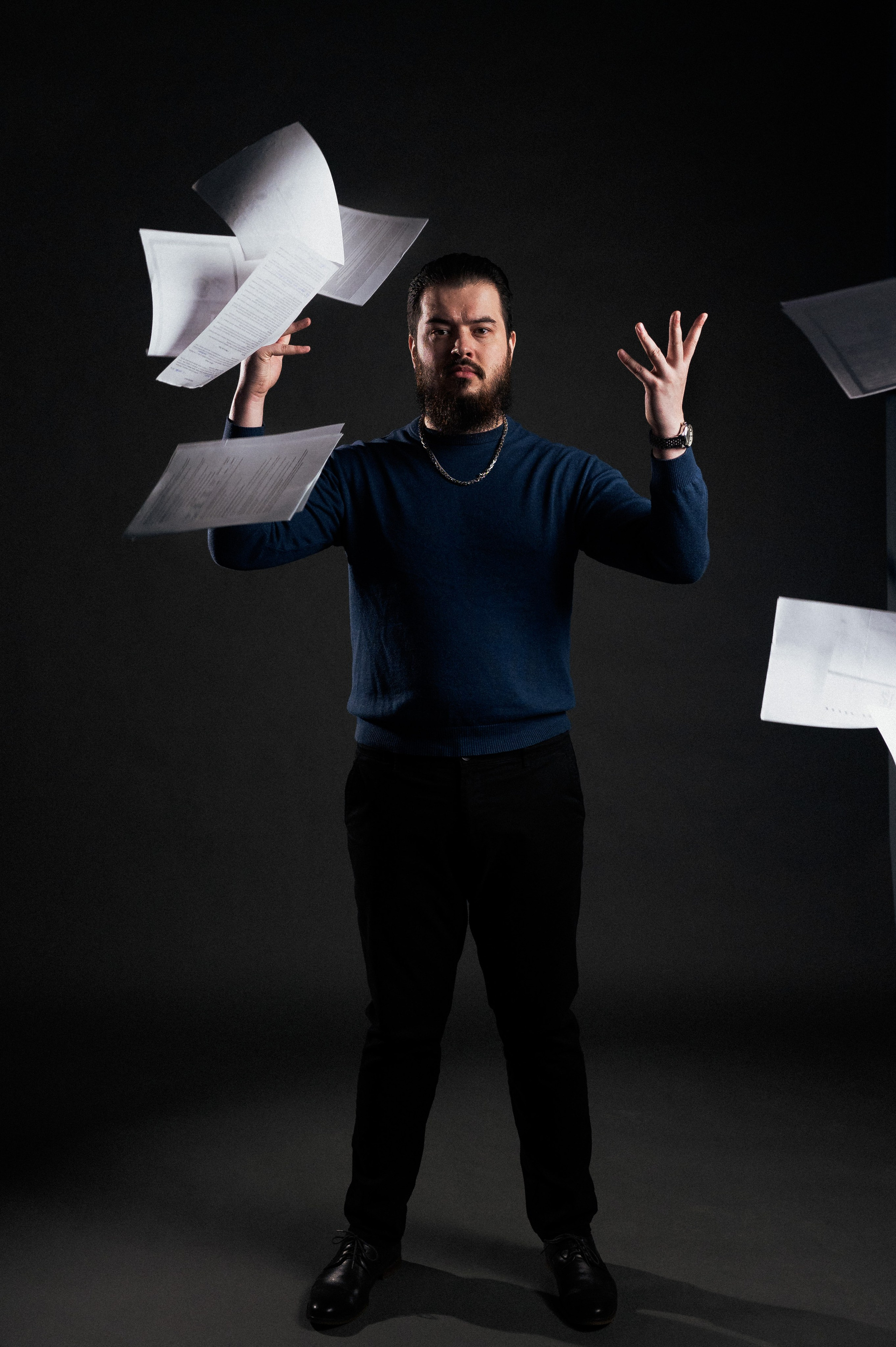 Блог Игоря — яркий, заряженный эмоциями, открытый, в тексте нет терпимости к прокрастенации и сглаживанию углов. Наша задача была поддержать это настроение в фотографиях. Мы провели три часа в студии, креативили, примеряли эмоции, выполняли разные сценарии с действиями. В итоге, вышло много разных картинок, и я была очень рада узнать, что Игорь активно использует их в своей работе.