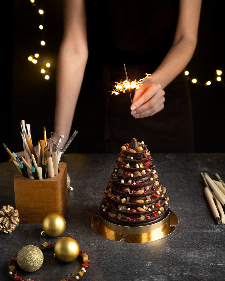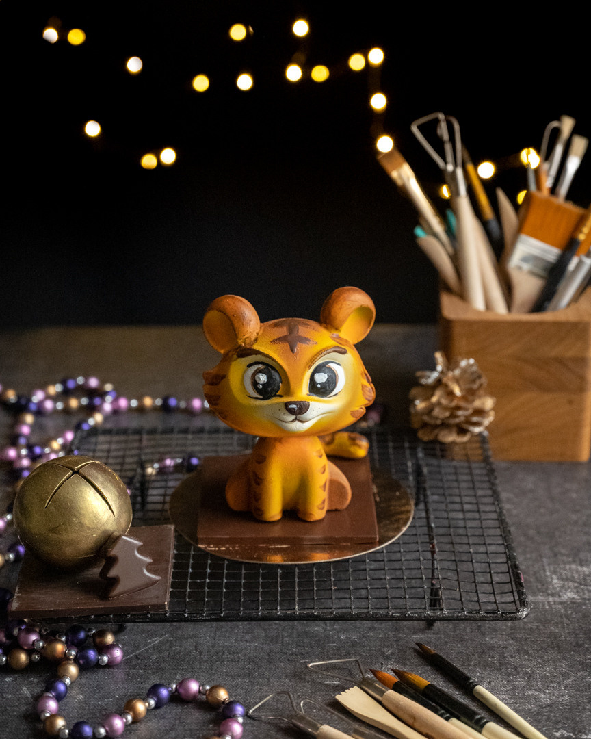 Настя известна в городе как кондитер с аккаунтом в инстаграмм «Happy in chocolate». Под новый год в ее мастерской мы сделали фото шоколадных изделий, соленой карамели, какао и печенья для рекламы. Использовали естественный свет и огоньки гирлянд.
