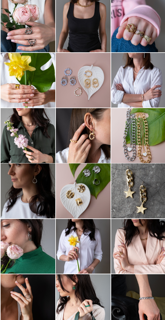 У нас было 22 украшения, вечер на подготовку и только 1 день на съемку. Необходимо было выбрать цвета для будущего аккаунта магазина в Instagram таким образом, чтобы они хорошо сочетались, как с серебром, так и с золотом, и аккаунт выглядел живым и ярким. Спасибо моим прекрасным подругам за участие в качестве моделей и поддержку. Мне кажется, мы выполнили данную задачу даже с такими непростыми сроками.