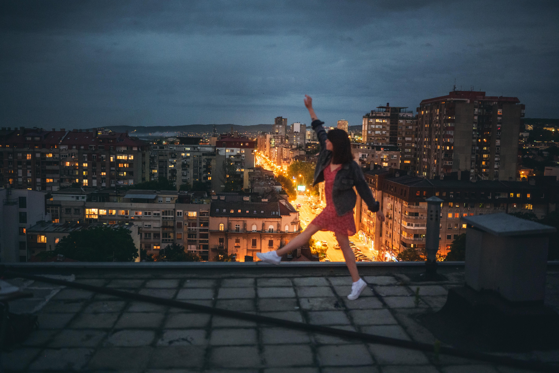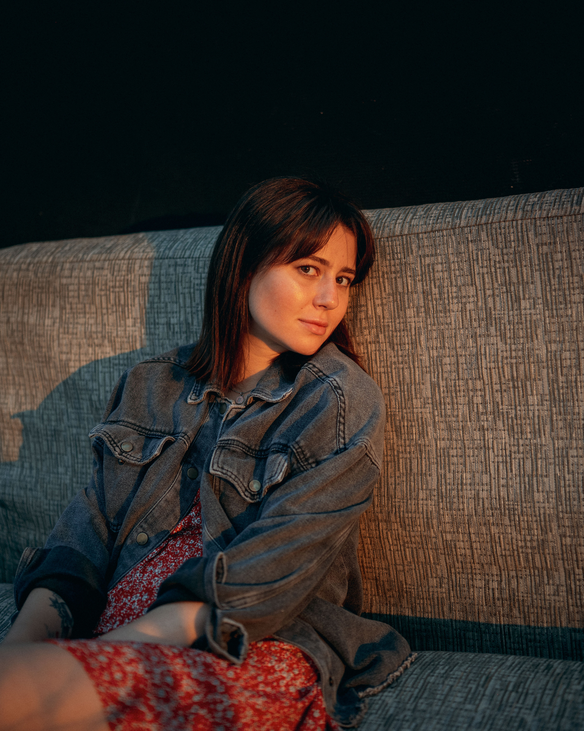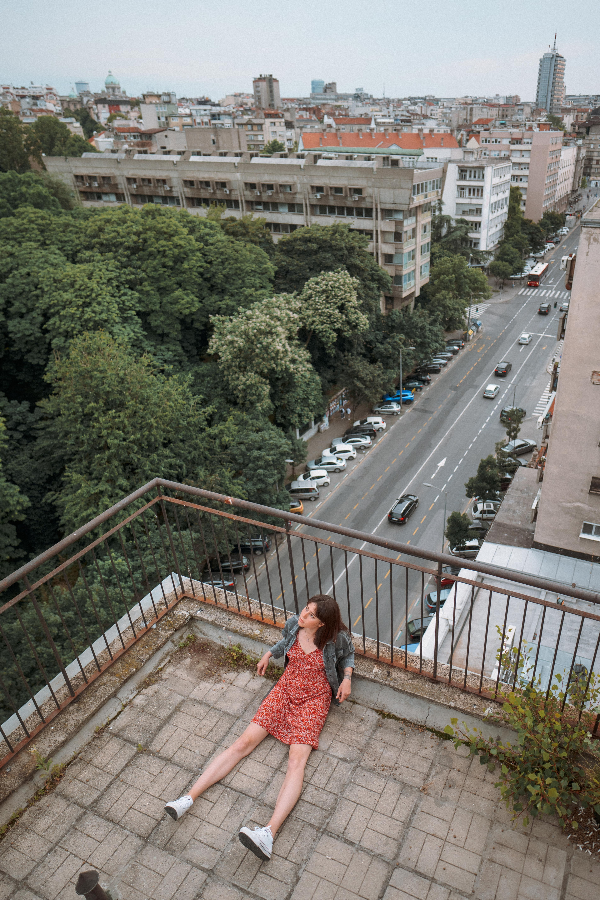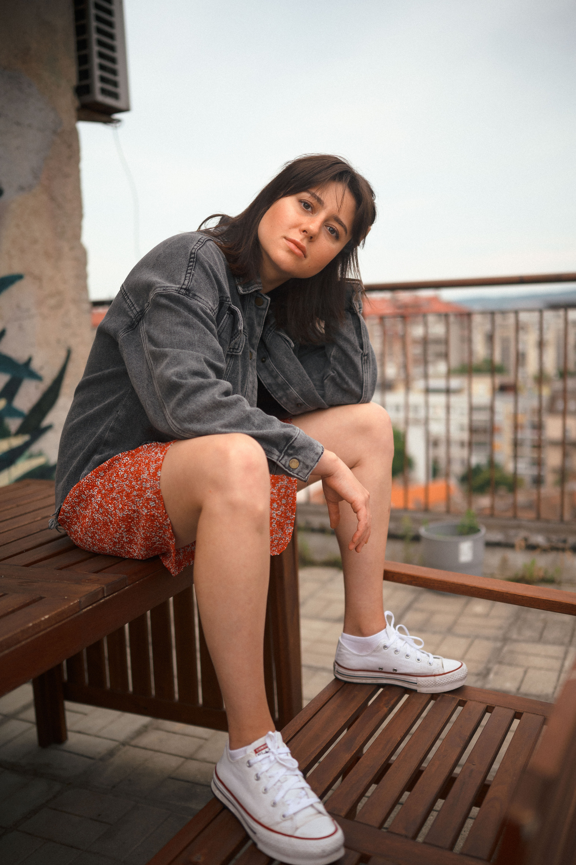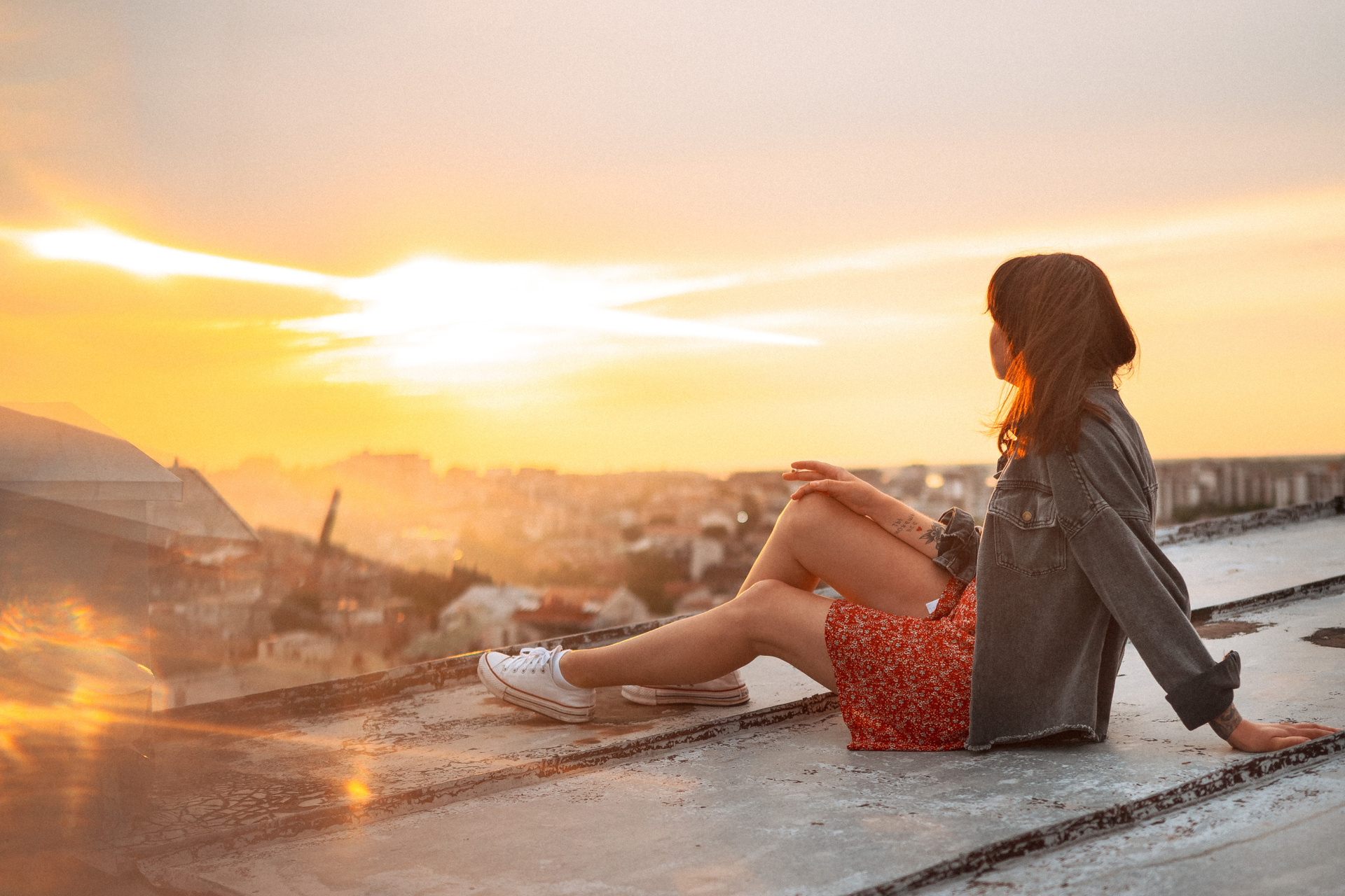 В тот день было облачно, но когда небо увидело, какую красоту мы собираемся сотворить, то сжалилось и изменило свои планы. И мы наблюдали невероятный закат… Все было, как в фильме. Романтика крыши, теплый свет, Женино летнее платье, мне так и виделась какая-то короткометражка про свободу и город. Кстати, это была первая съемка для Жени! Это +10050 к ответственности. Сколько раз я слышала от ребят о плохом опыте, о неловкости. Знаете, главное, это хорошо провести время, расслабиться любыми способами, даже если приходится представлять, что вместо камеры в руках у человека напротив — любимое вино.