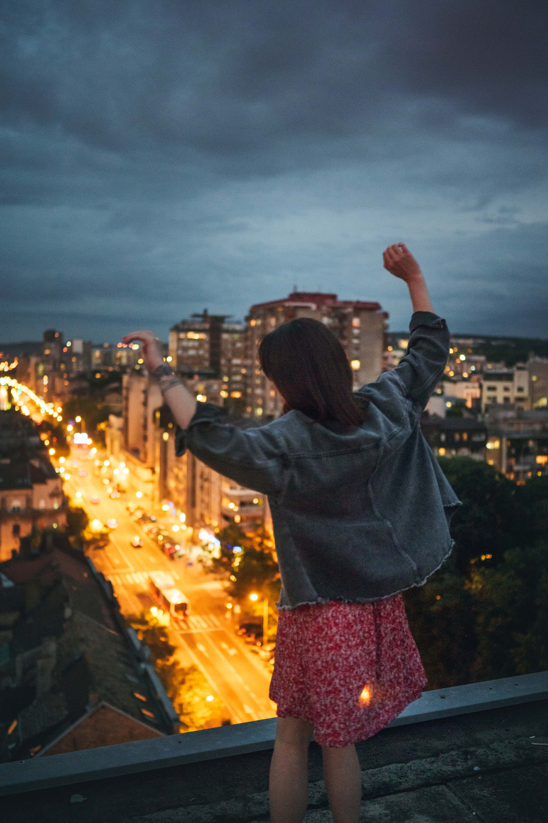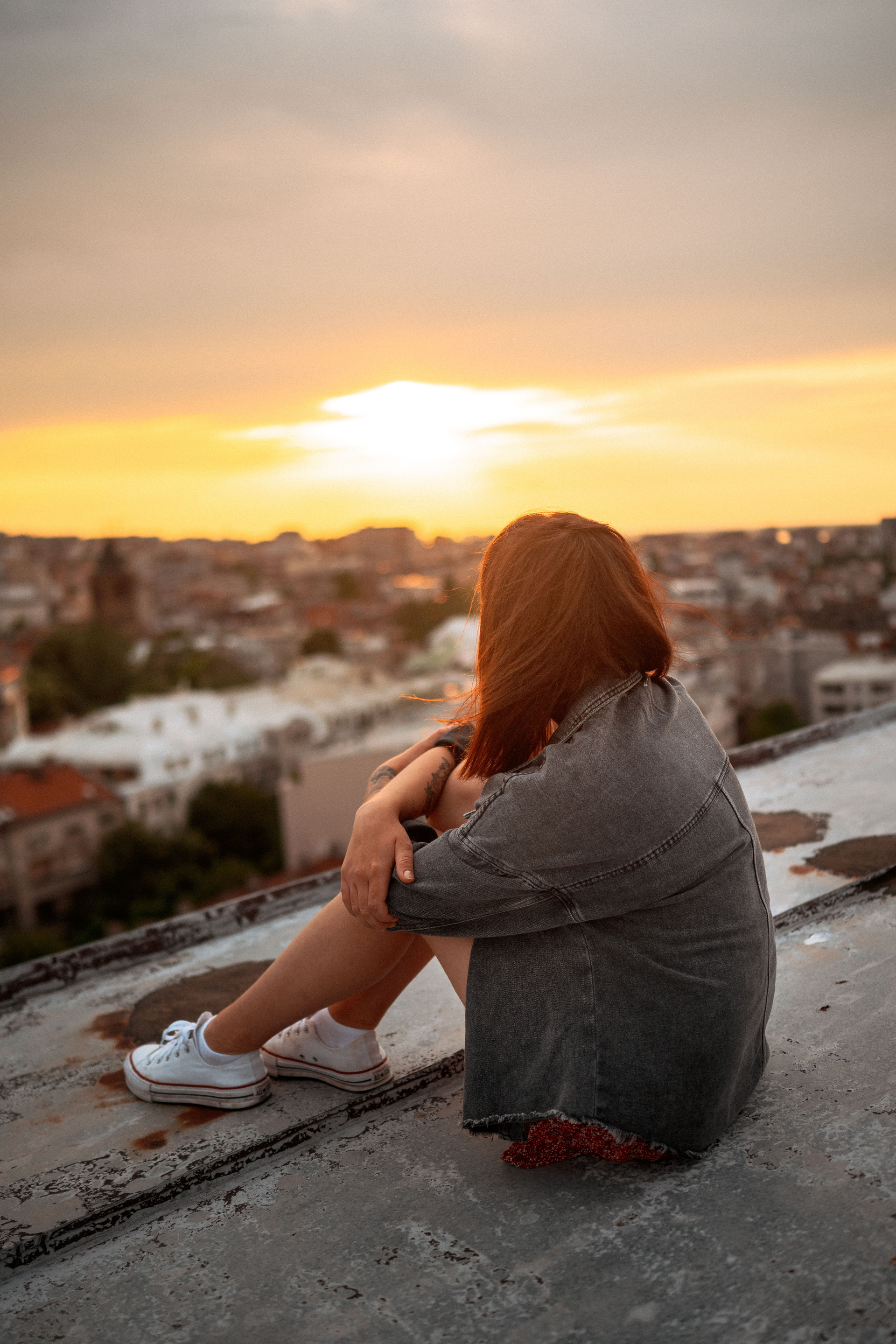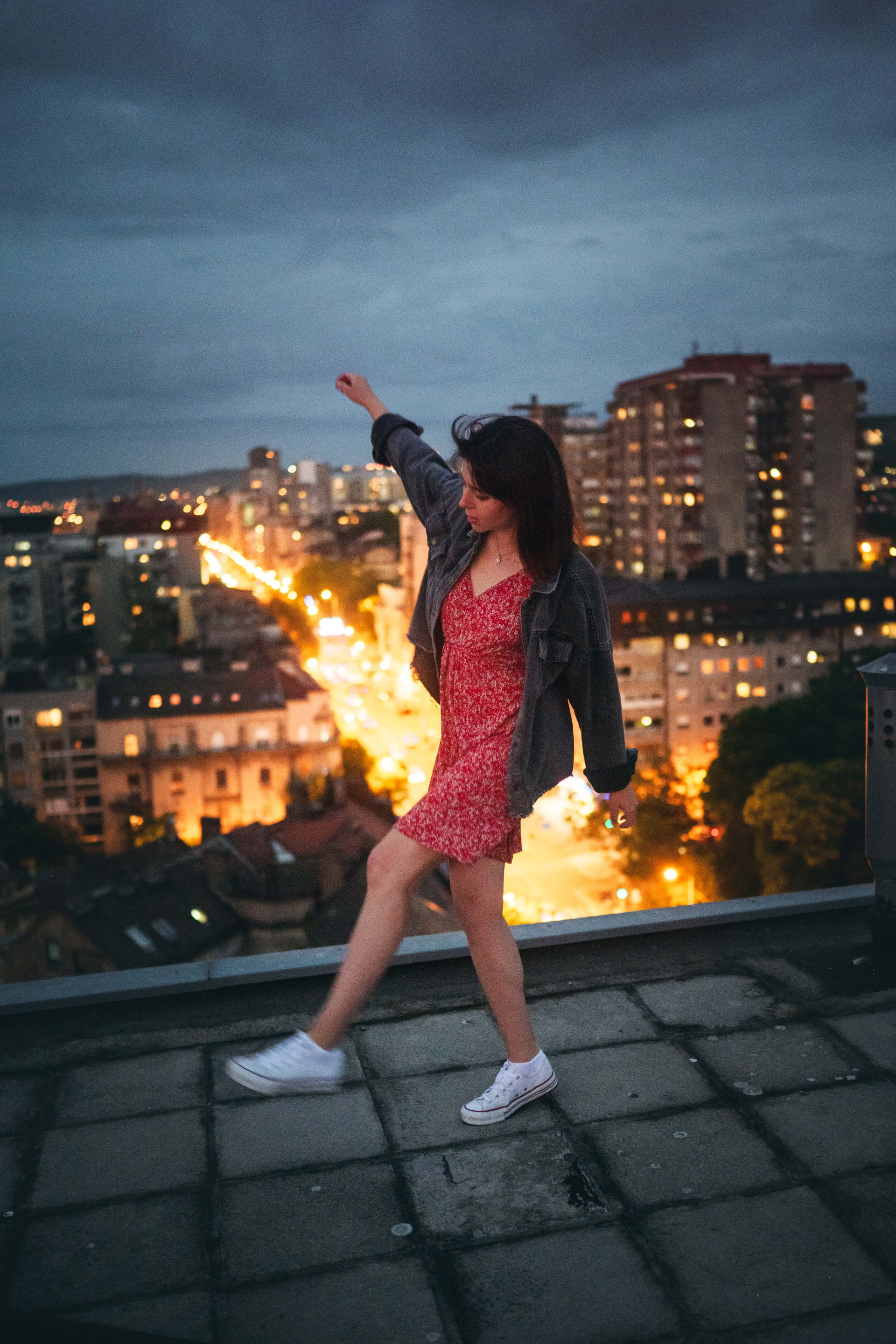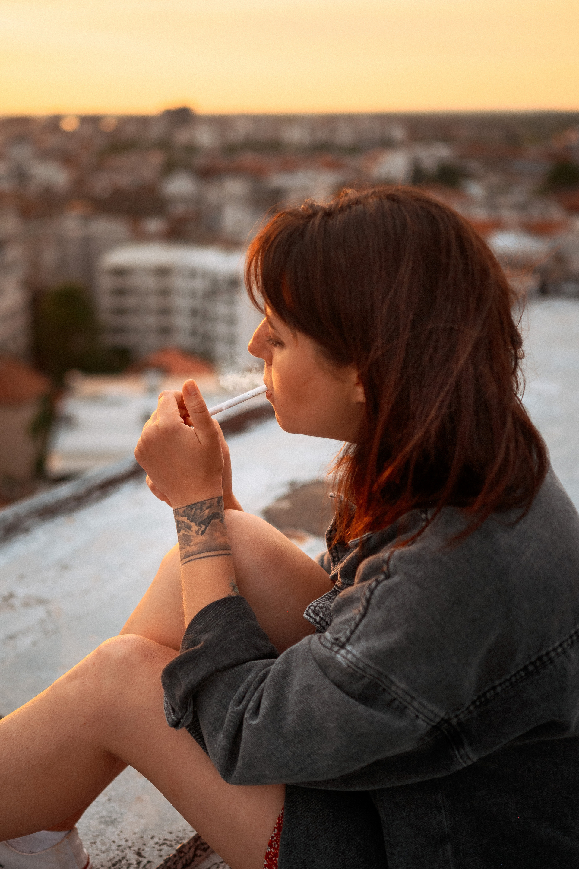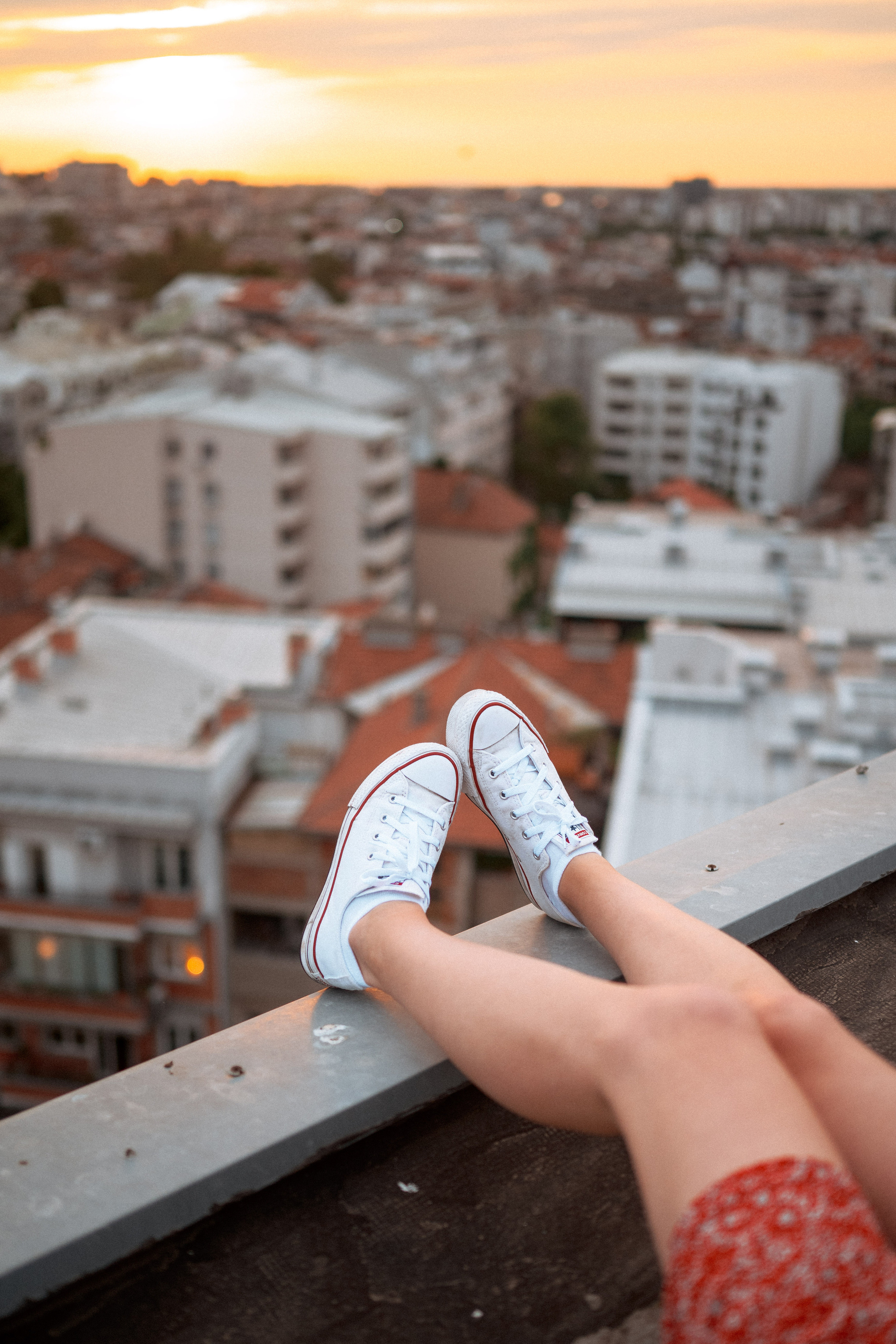 В тот день было облачно, но когда небо увидело, какую красоту мы собираемся сотворить, то сжалилось и изменило свои планы. И мы наблюдали невероятный закат… Все было, как в фильме. Романтика крыши, теплый свет, Женино летнее платье, мне так и виделась какая-то короткометражка про свободу и город. Кстати, это была первая съемка для Жени! Это +10050 к ответственности. Сколько раз я слышала от ребят о плохом опыте, о неловкости. Знаете, главное, это хорошо провести время, расслабиться любыми способами, даже если приходится представлять, что вместо камеры в руках у человека напротив — любимое вино.